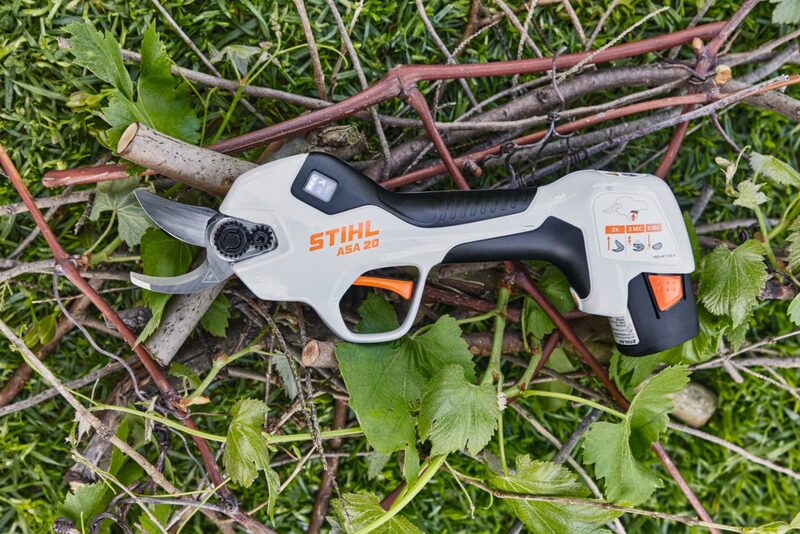 In comparison with conventional pruning shears, STIHL ASA 20 battery-powered pruning shears make cutting work noticeably easier in tree, hedge, shrub, ornamental plant and vine maintenance tasks – in domestic situations as well as when working in crop fields or vineyards, for example.